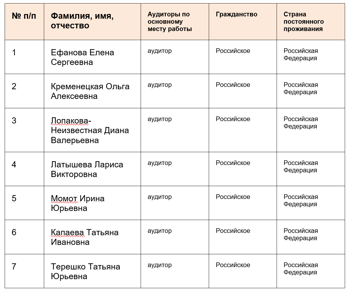 7. Информация об аудиторах, работающих в аудиторской организации по трудовому договору: